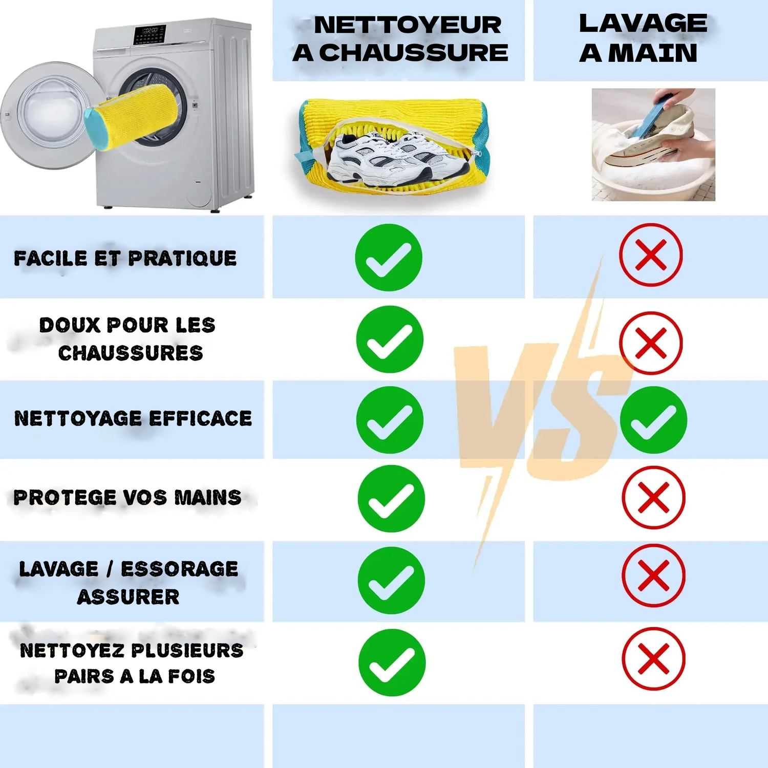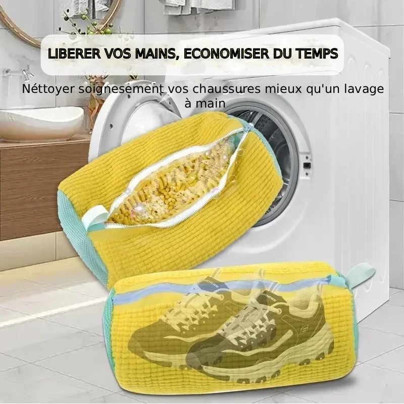 Les baskets s'abîment dans la machine à laver, sans protection adéquate. Le sac de lavage pour chaussures stimule le nettoyage des chaussures comme un lavage à la main.